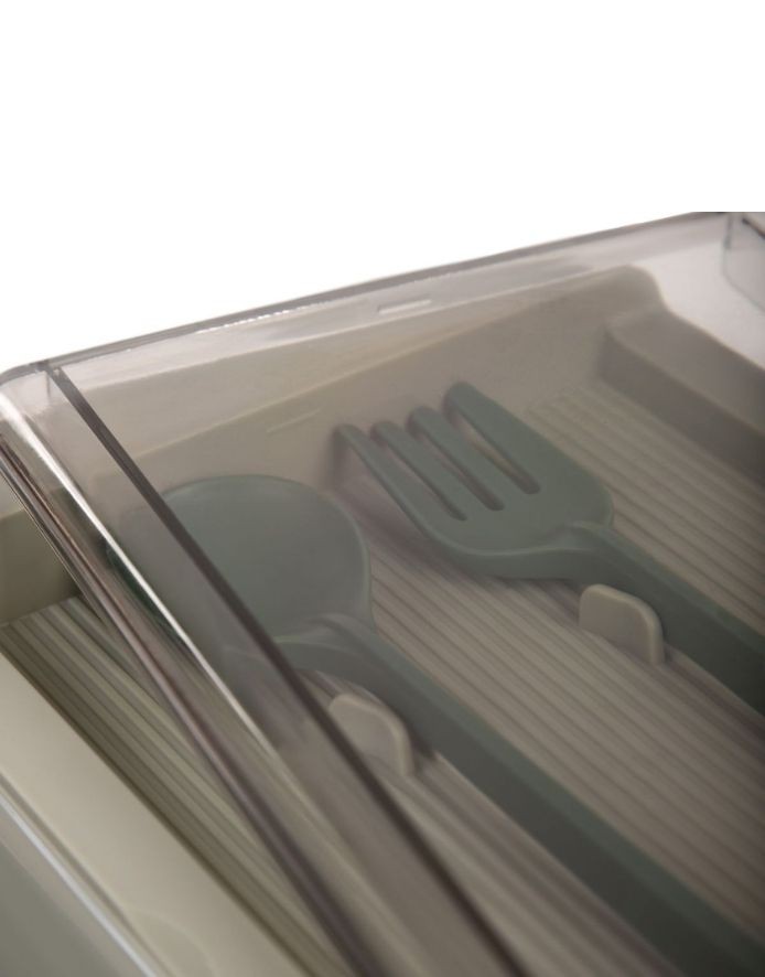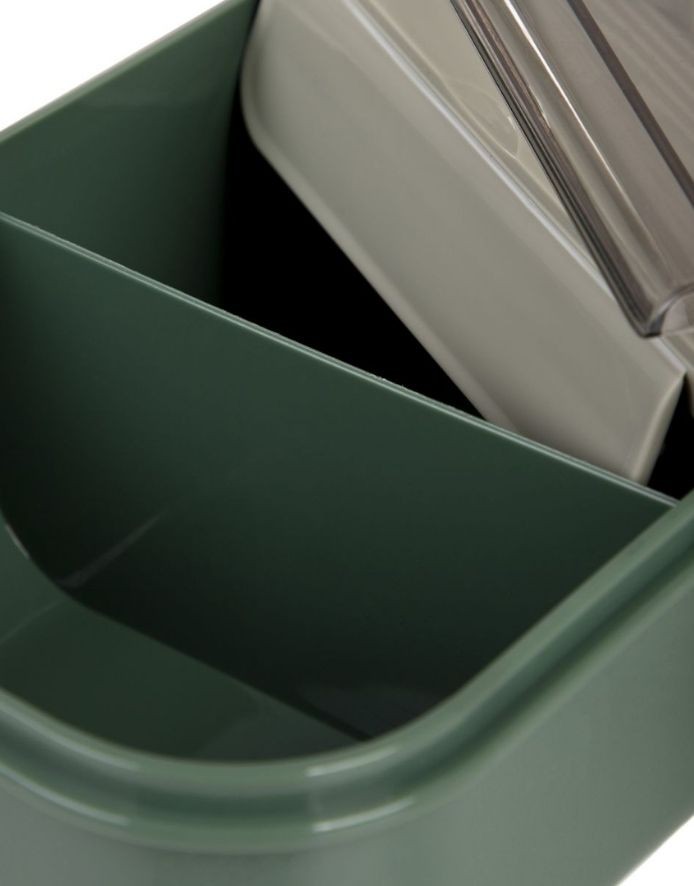 - Divided into three compartments - 2 compartments for food, 1 compartment for tools.