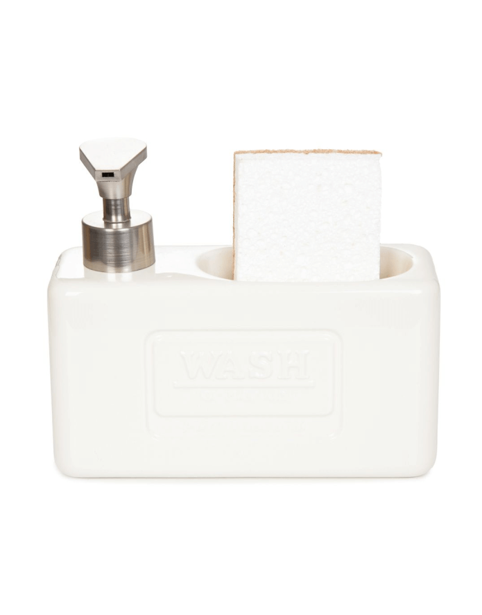 The HOMLA JASAI liquid soap dispenser is a stylish and practical container for soap and a sponge or cloth (sponge included in the set).