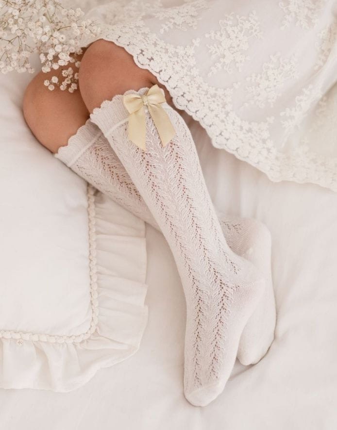 Children's socks "Openwork Knee With a Bow" Ecru