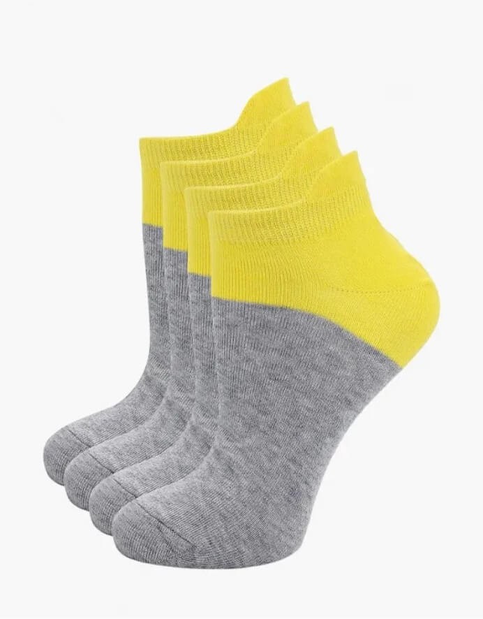 Īsas kokvilnas sporta zeķes sievietēm no zīmola "Pierre Cardin" pelēkā un dzeltenā krāsu kombinācijā.