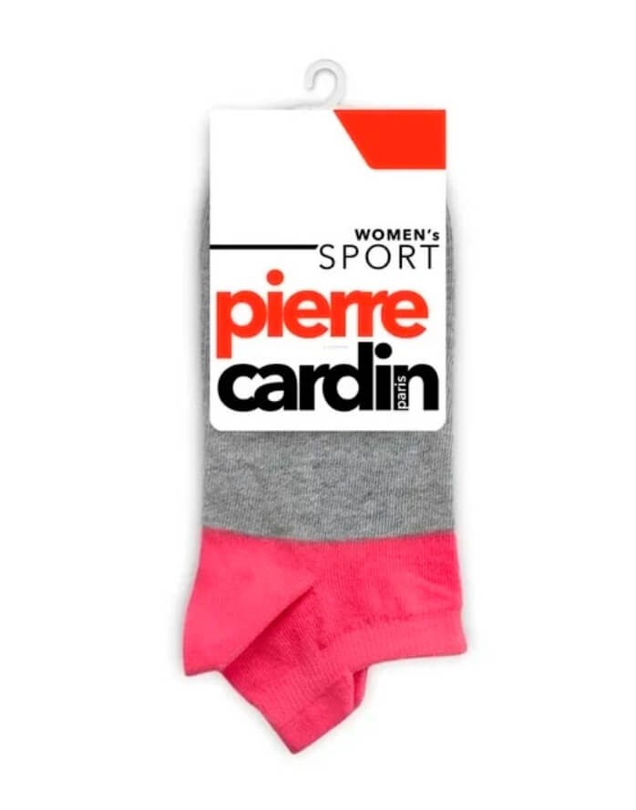 Īsas kokvilnas sporta zeķes sievietēm no zīmola "Pierre Cardin" pelēkā un rozā krāsu kombinācijā.