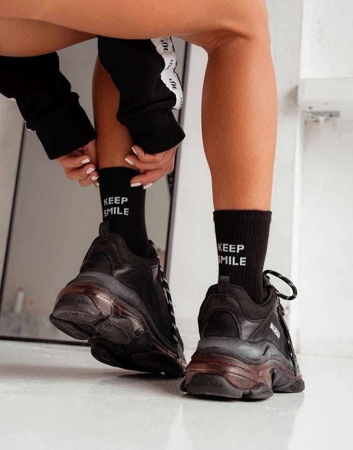 - Garas zeķes ar uzrakstu aizmugurē.