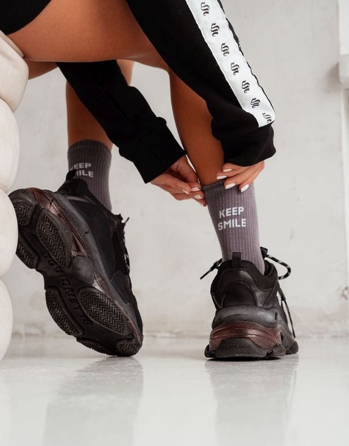 - Garas zeķes ar uzrakstu aizmugurē.