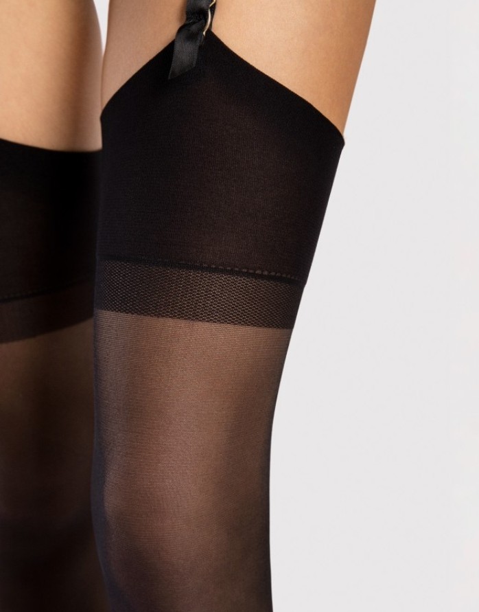 Klasiskās zeķes ar āķi un acīm ar unikālu spīdumu, kas panākts, apvienojot likru un spīdīgu trilobal šķiedru. (bez siksnas)