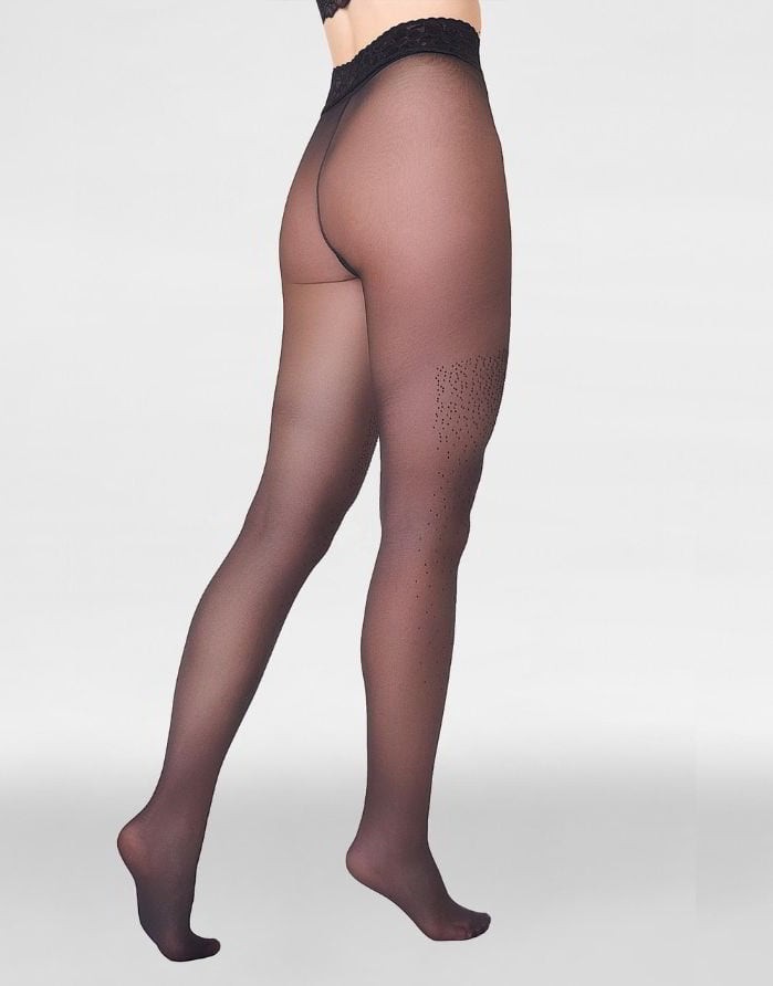 Ekskluzīvas spīdīgas zeķubikses, kas dekorētas ar minimāliem cirkona akmeņiem. Vidukļa daļu rotā plata silikona mežģīņu josla.
