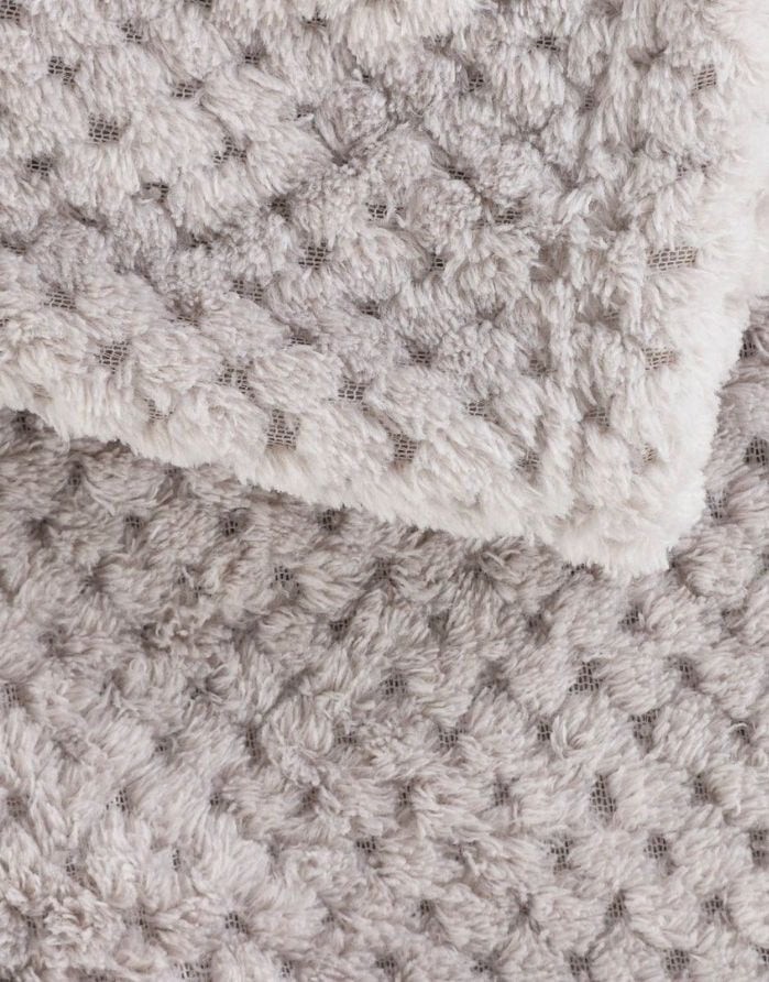Viss gultas pārklājs ir gaiši pelēkā krāsā ar smalku dekoratīvu apdruku. Malas ir rūpīgi apvīlētas, kas liecina par augstu meistarības līmeni.