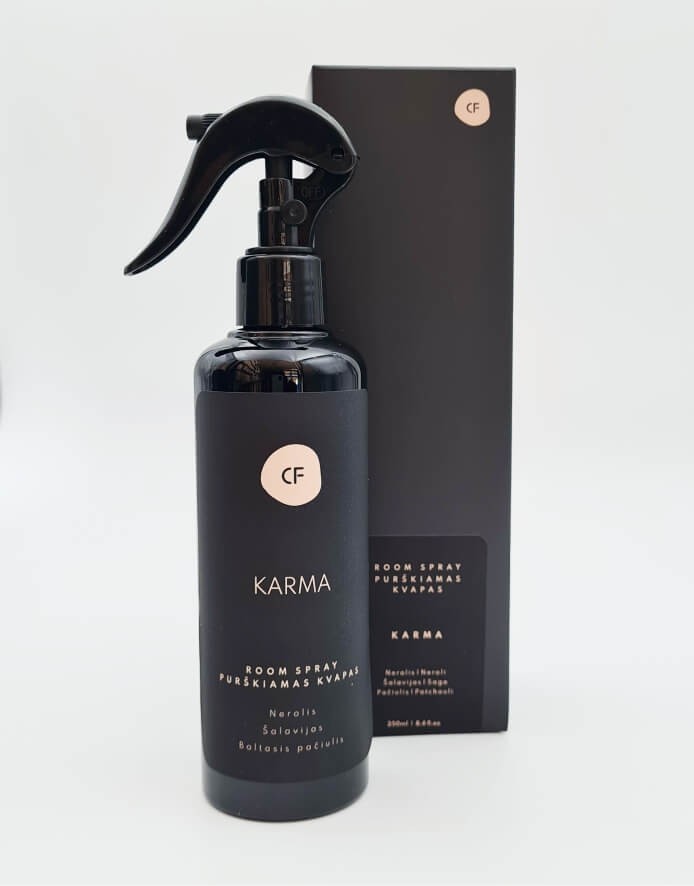 Mājas izsmidzināmais aromāts KARMA tiek ražots, sajaucot aromātiskās eļļas.