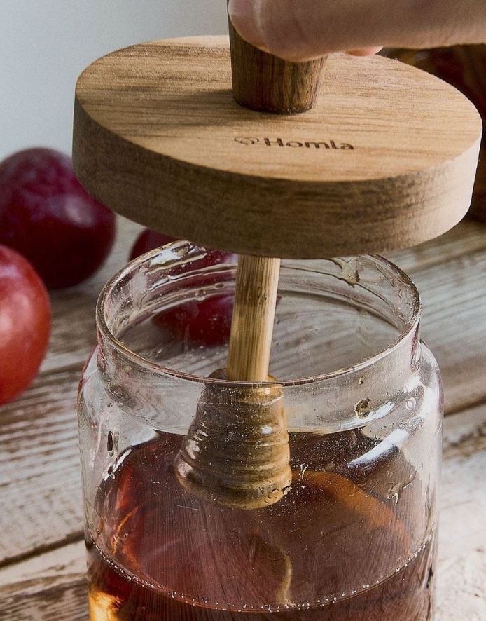 - Koka vāks ar iebūvētu medus dozatoru.