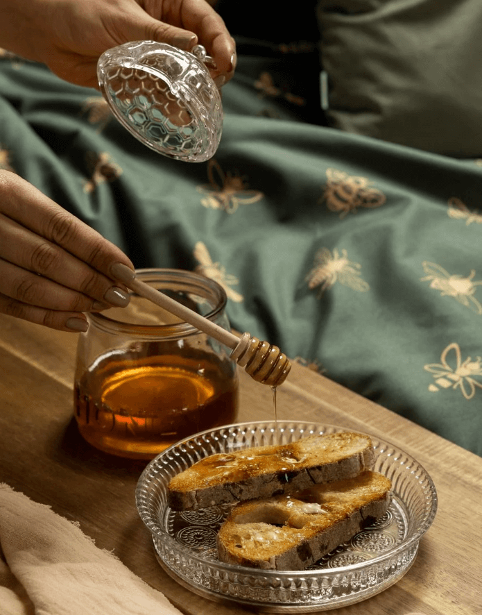 Regel medus burka ir ne tikai ērts veids, kā uzglabāt medu, bet arī skaists dekors. Vākam ir bites formas virsma. Komplektā ietilpst īpaša karotīte medus piekāršanai.