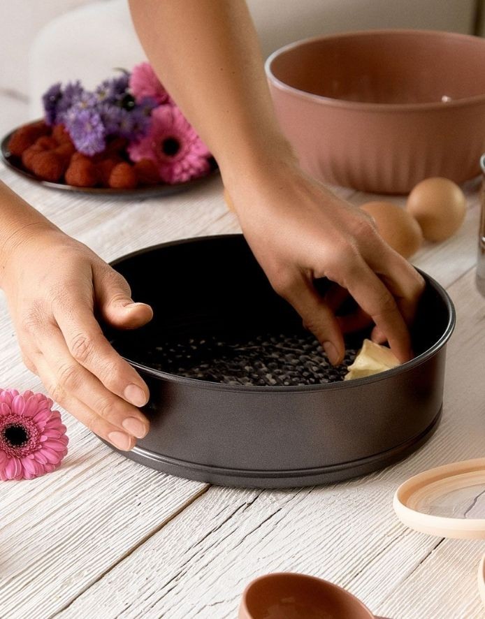 Klasisks, apaļš cepamtrauks ar noņemamu pamatni. Viegli un ērti izņemt ceptos izstrādājumus.