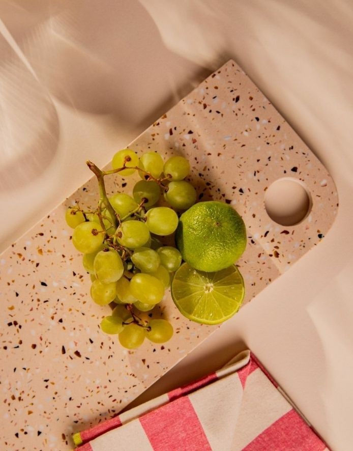 - TERRAZZO dēlis ir lieliski piemērots gan griešanai, gan kā eleganta servēšanas paplāte uzkodām, sieram vai maizei.