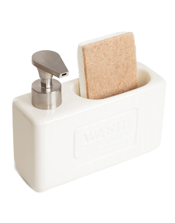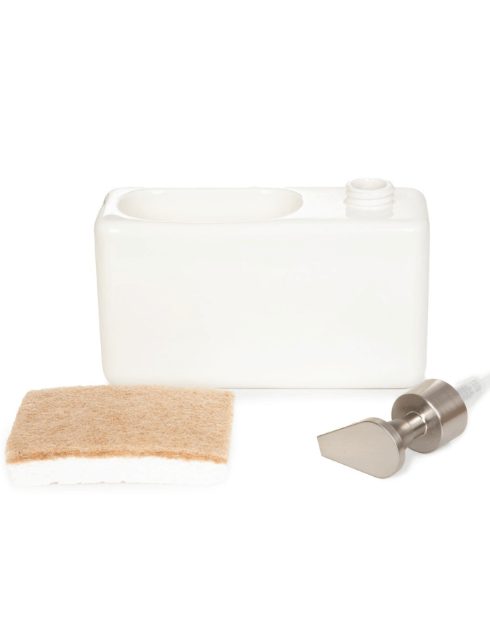 HOMLA JASAI šķidro ziepju dozators ir stilīgs un praktisks konteiners ziepēm un sūklim vai lupatiņai (sūklis iekļauts komplektā).