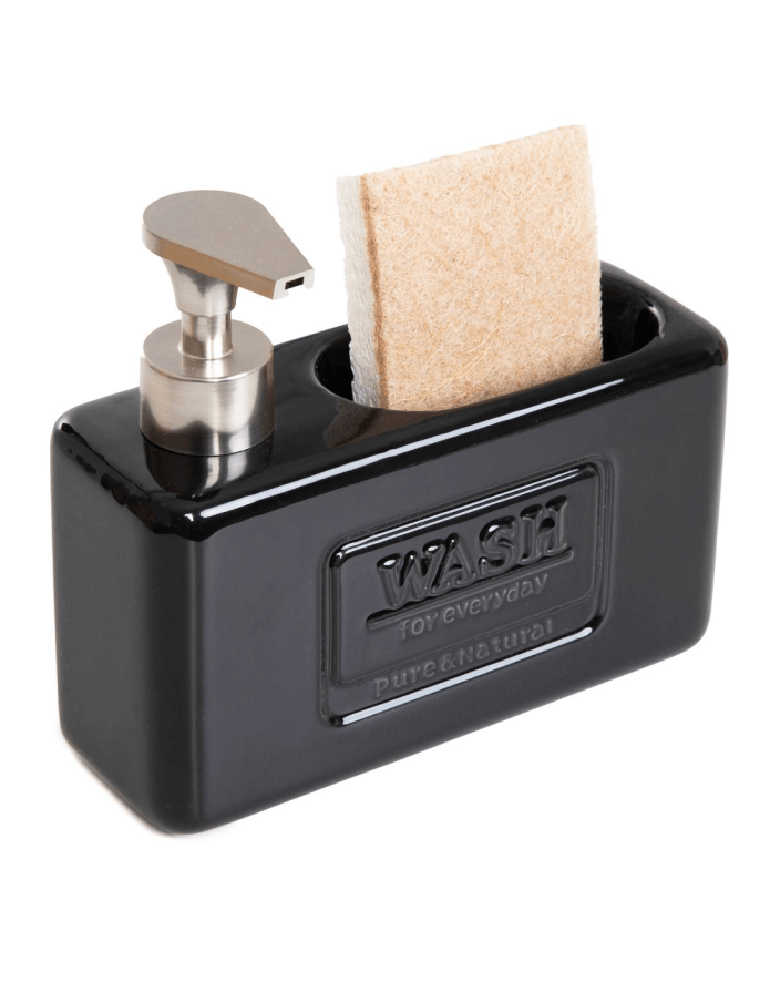 HOMLA JASAI šķidro ziepju dozators ir stilīgs un praktisks konteiners ziepēm un sūklim vai lupatiņai (sūklis iekļauts komplektā).