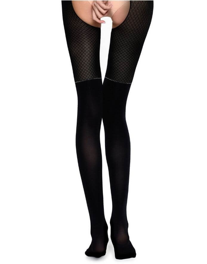 - Однотонные с вырезами на передней и задней части, верхняя часть 20 ден, нижняя 60 ден.