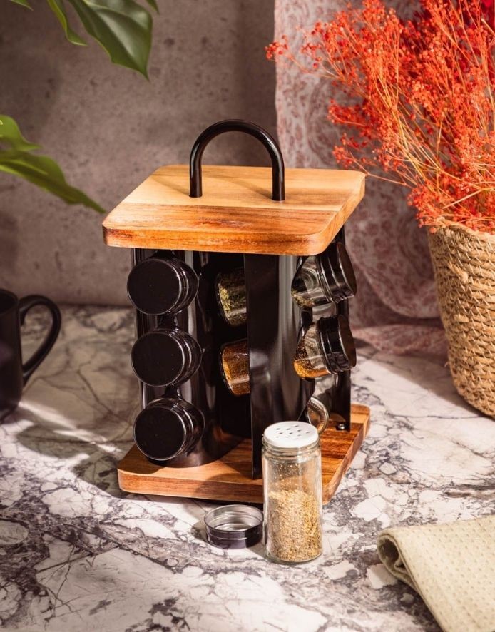 Подставка для специй LENNE на вращающейся подставке обеспечивает быстрый и лёгкий доступ к специям, что чрезвычайно удобно во время приготовления пищи. Она также станет отличным подарком на любой случай — от дня рождения до новоселья или праздника.