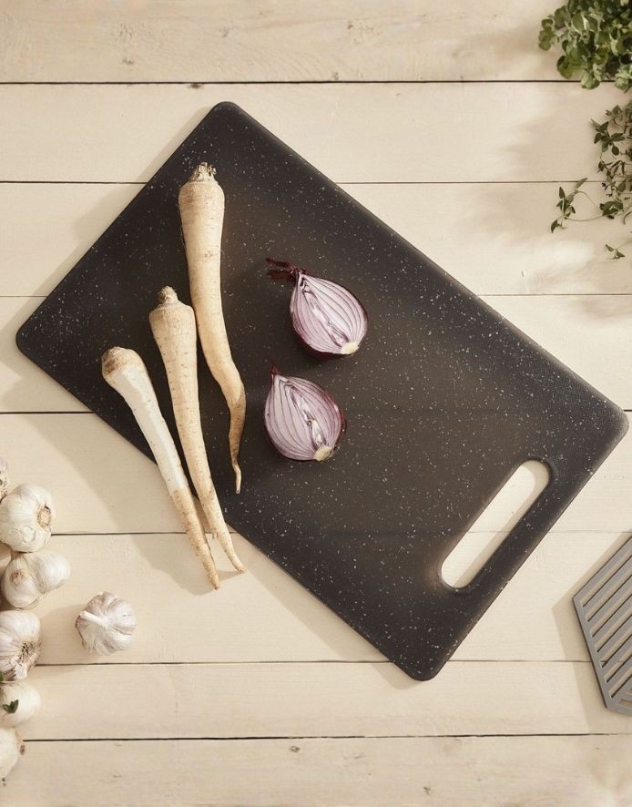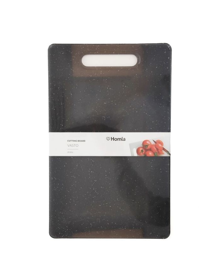 Разделочная доска VASTO — аксессуар, сочетающий в себе функциональность и эстетику. Доска выполнена в темно-сером цвете, ее поверхность усеяна мелкими белыми точками.