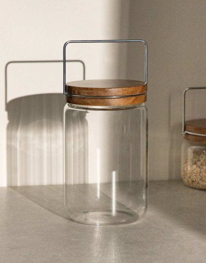 Прозрачная, прочная стеклянная емкость очень удобна в использовании на кухне и добавит индивидуальности вашему интерьеру.