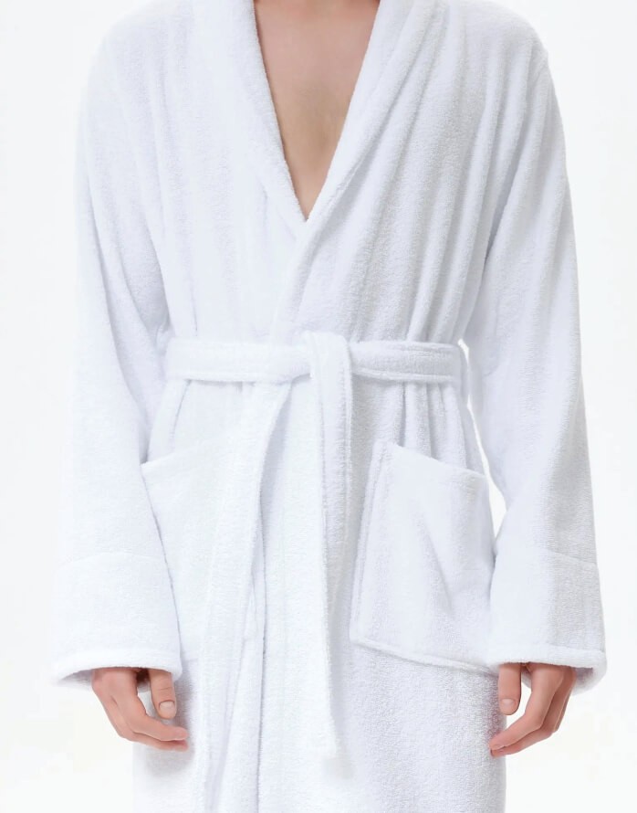 Халат из махровой ткани с воротником. Изготовлен из высококачественной ткани плотностью 400 г/м², мягкий и отлично впитывает воду.