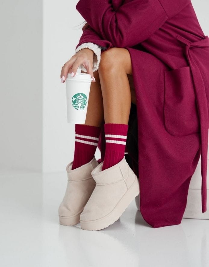 - Высокие вязаные носки с полосками наверху.