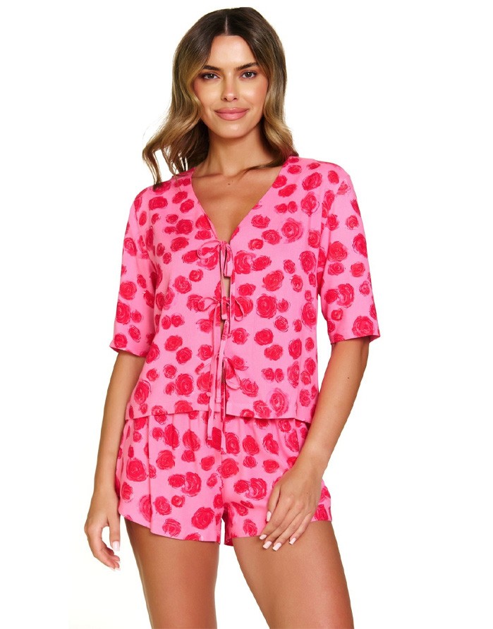 Мягкая, как шелк, лёгкая и очаровательная женская пижама. Ткань с ярким принтом в виде роз.