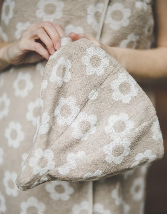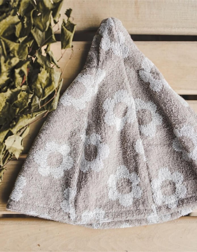 Очень удобная шапочка для сауны, гигиеничная и легкая. Легкий уход и легкое мытье. Перед тем, как надеть эту шапку на голову в сауне, ее можно смочить в воде, чтобы дополнительно защитить голову и волосы от воздействия сухого горячего воздуха сауны.