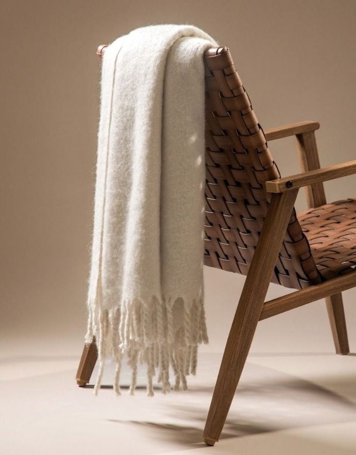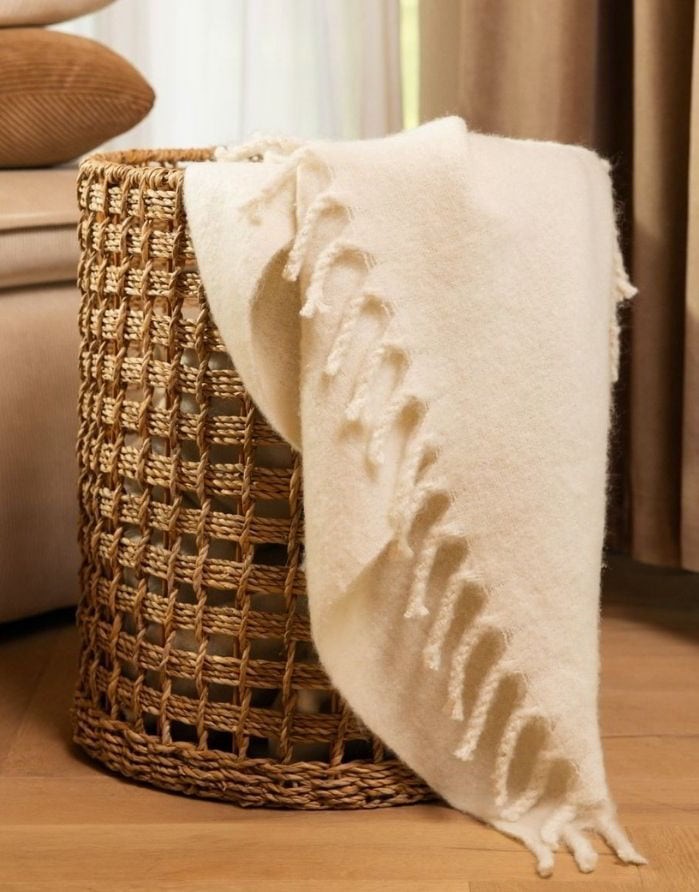 Нежный, светлый цвет привнесет спокойствие и гармонию в ваш интерьер, а благодаря содержанию шерсти он не только теплый, но и невероятно мягкий на ощупь.